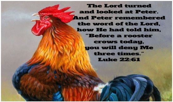Jesus turned and looked at Peter, Peter heard the cock outside. His look said, I still love you, Peter, even though you’ve me denied. Peter rushed and blindly groping for the latch upon the door, Shutting out the crowded courtyard, could not bear it anymore. Rushing, tripping through the alleys, remorse and anguish welling up, He denied his Lord and Master, he had filled his bitter cup.